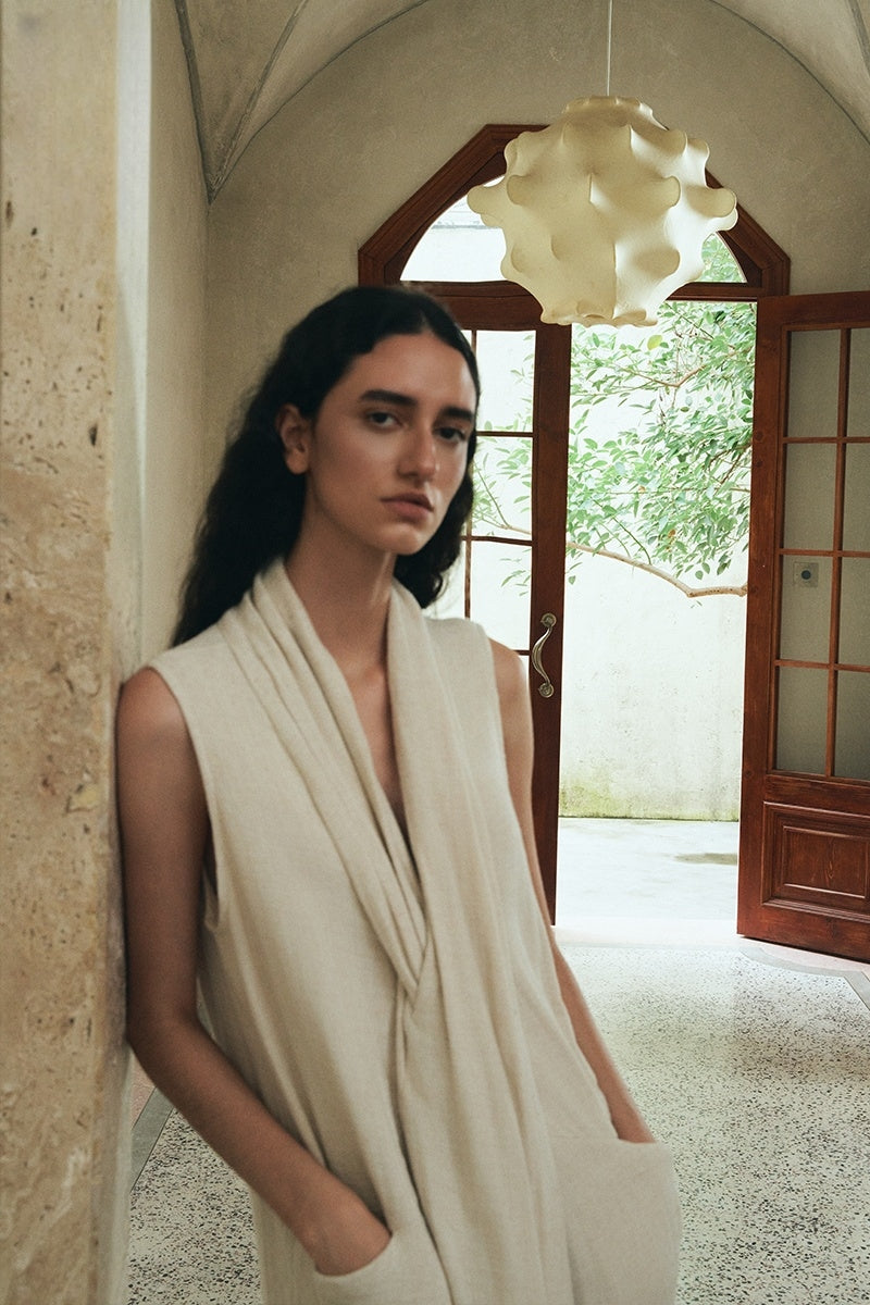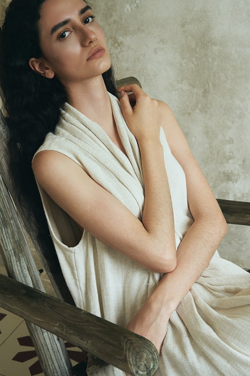 미니멀한 드레이핑이 송나라의 우아함과 만남—대나무 질감의 리넨과 텐셀™으로 제작되었습니다.